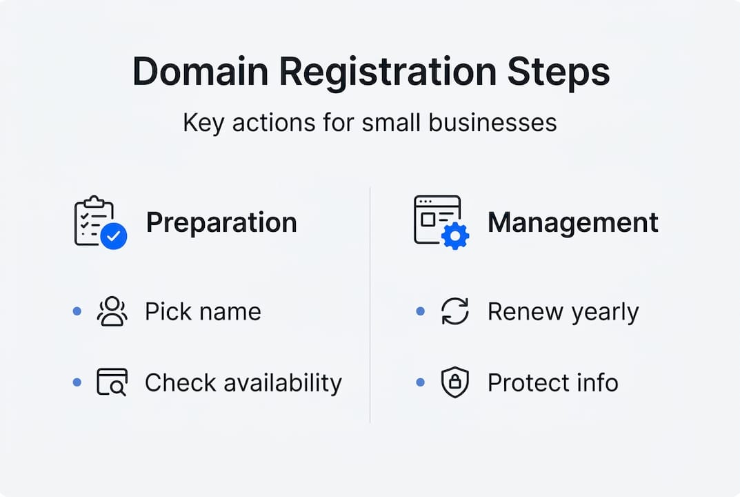 Most small business owners don't think twice about domain registration until something goes wrong. A surprise renewal bill, a domain that expired while you were busy, or a competitor who snagged your ideal name first. Initial registration can cost as little as $8-15 per year, but renewal fees, redemption penalties, and hidden charges can turn a simple process into a costly headache. This guide walks you through exactly how domain registration works, what it costs, and how to protect your business name online from day one.